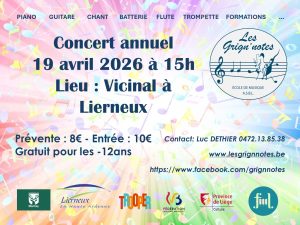 19/4/26 à 15h : Concert annuel de l’école au Vicinal (PS : si la réservation en ligne ne fonctionne pas via votre smartphone, veuillez le faire par pc ou tablette. Merci pour votre compréhension)